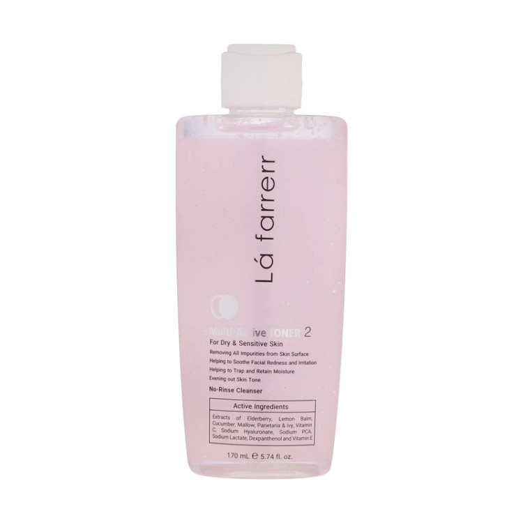 تونر لافارر پوست خشک منافذ پوست را به طور عمیق پاکسازی میکند و این منافذ باز را جمع و کوچک تر کرده و به حفظ زیبایی و شادابی پوست کمک میکند. تونر لافارر پوست خشک در جذب بهتر مواد مغذی و آبرسانی پوست موثر است و التهابات و خارش و سوزش را در این نوع پوست التیام میبخشد. تونر مولتی اکتیو پوست خشک و حساس لافارر، حاوی عصاره های گیاهی مانند عصاره پیچک، عصاره خیار، آلوئه ورا و پنیرک است و دارای ویتامین C و E، مورد نیاز پوست است. این تونر، بافت سبکی داشته و چربی اضافی ندارد و به پوست آسیب نمیرساند.