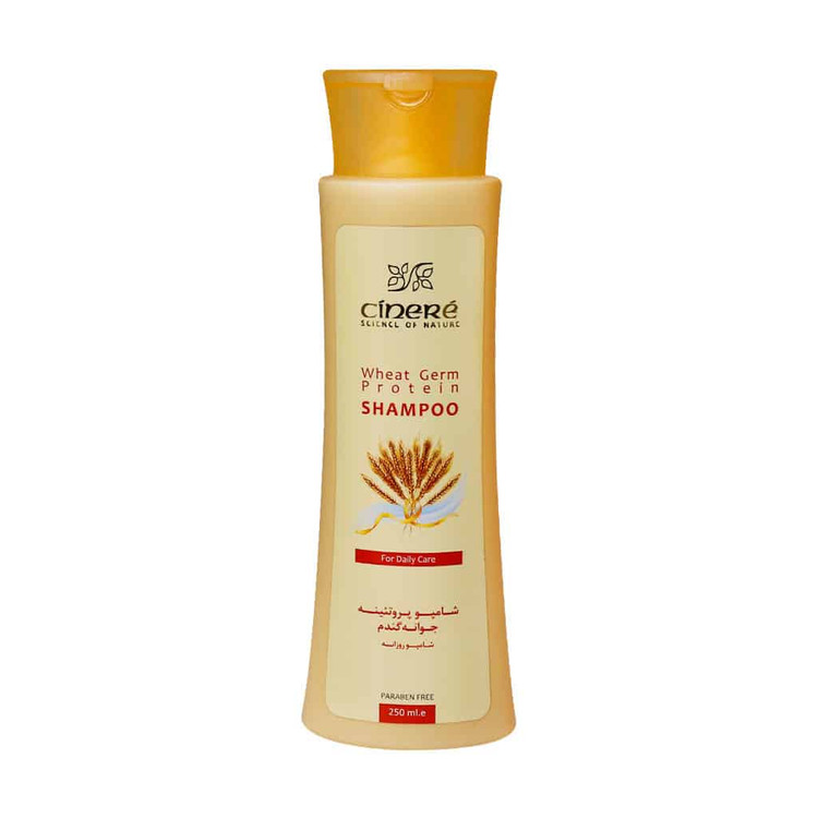 شامپو جوانه گندم سینره با پروتئین جوانه گندم فرموله شده که به تقویت مو کمک میکند.