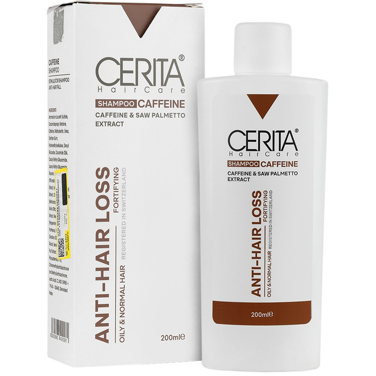 شامپو کافئین سریتا با دارا بودن ترکیبات موثره گیاهی همانند کافئین، ساوپالمتو، گزنه، بابونه، مریم گلی و سایر ترکیبات می تواند موجب تقویت موی شما شود.