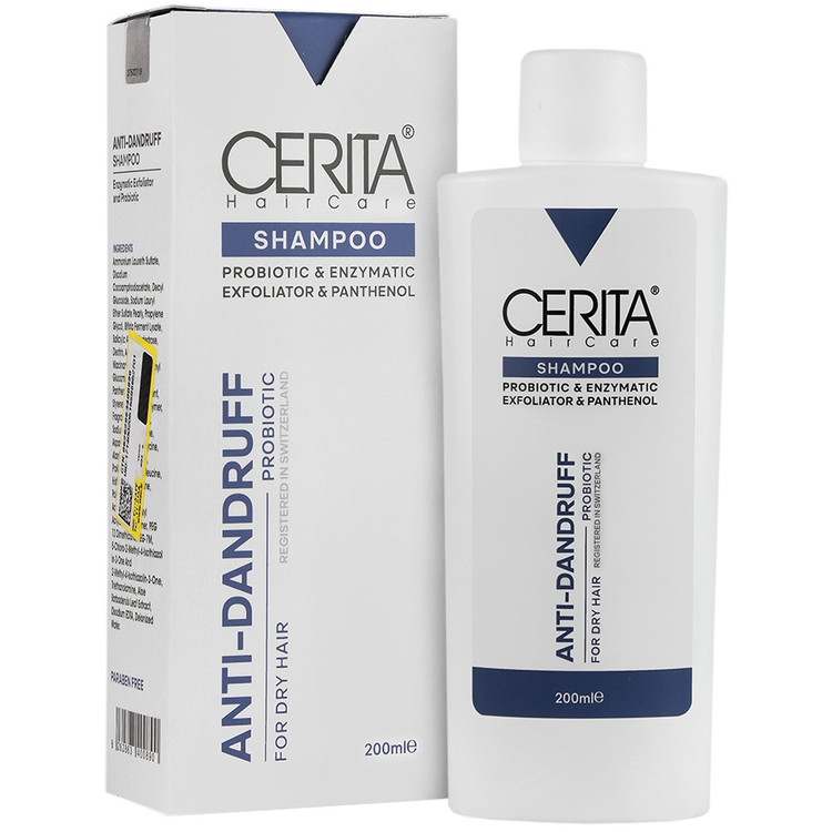 شامپو ضد شوره پروبیوتیک موهای خشک سریتا با داشتن لایه بردارهای آنزیماتیک (اسید سالیسیلیک)، ورقه های خشک پوست سر را از بین می برد. این شامپوی ضد شوره با فرمولاسیونی نوین و به علت داشتن ترکیبات پروبیوتیک، تعادل میکروبی پوست کف سر را بازگردانده و به تنظیم pH پوست سر کمک می کند.